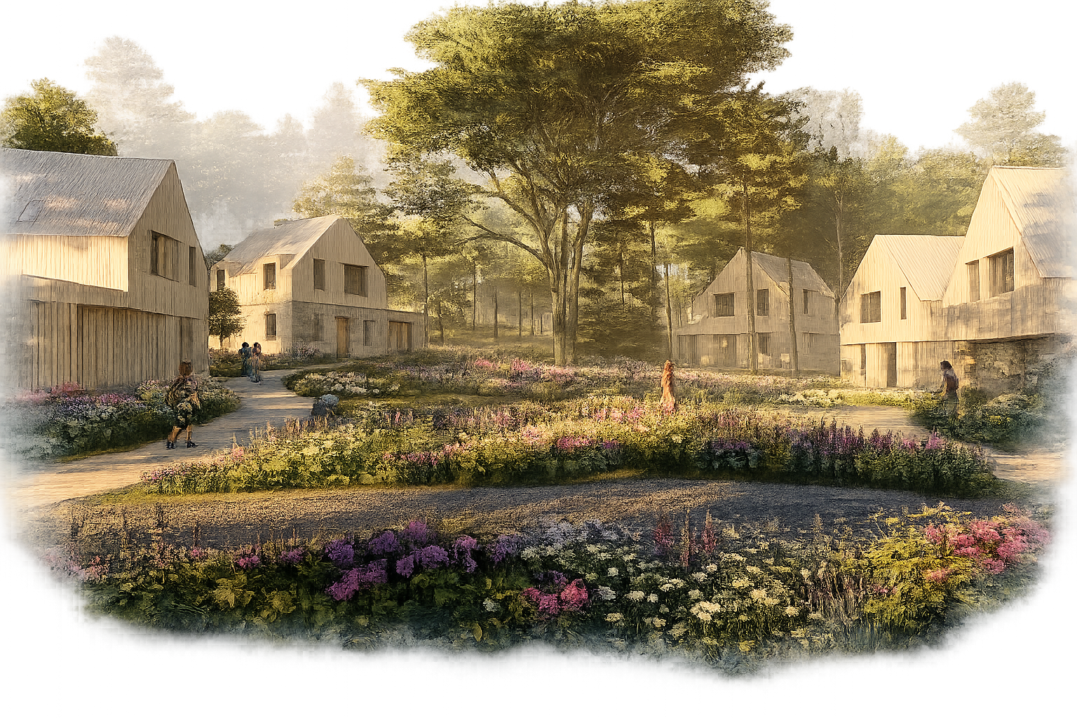 Designs are based on a mews style development and create an organic plan arranged around small private courtyards. This presents as a cluster of interesting pitched roof forms, reminiscent of the local vernacular.